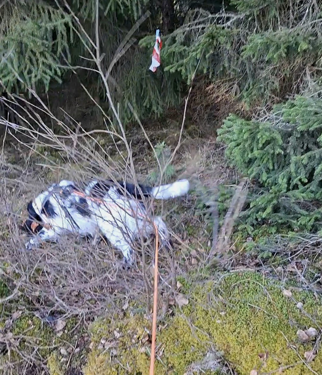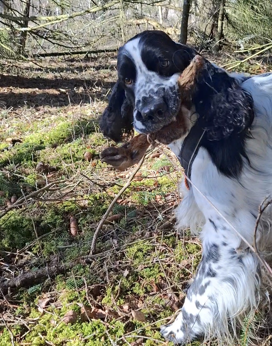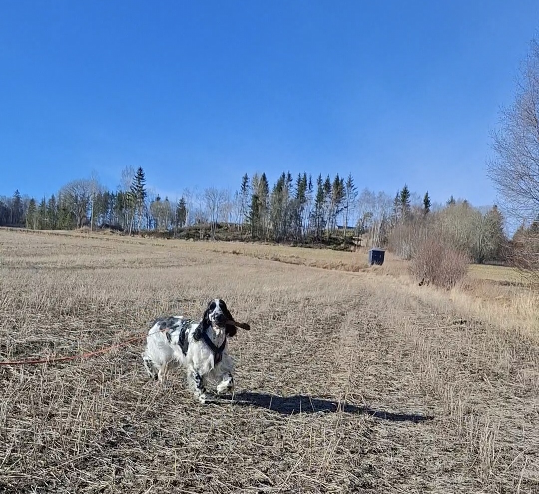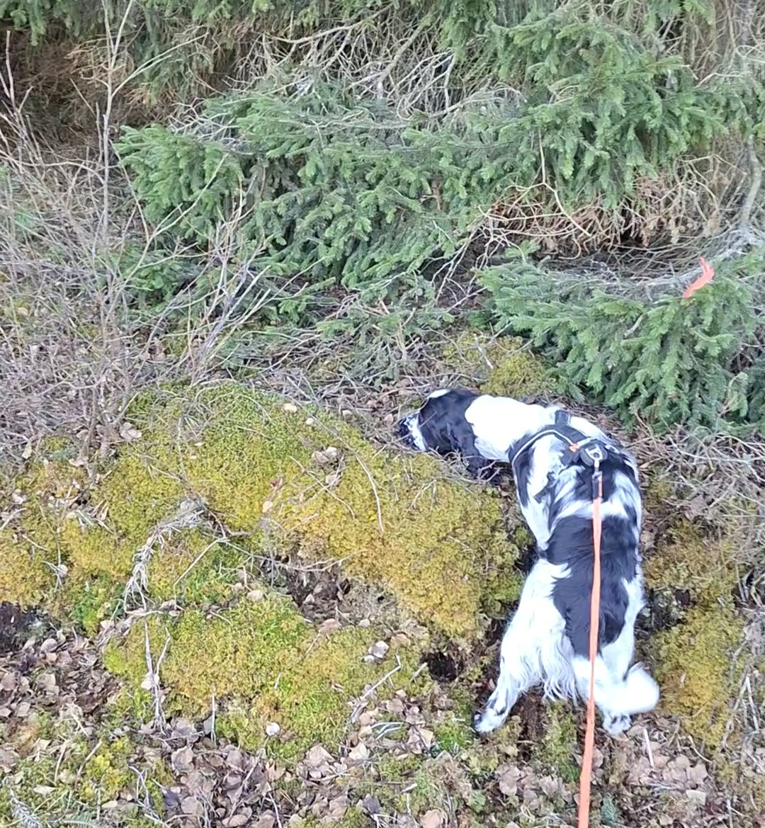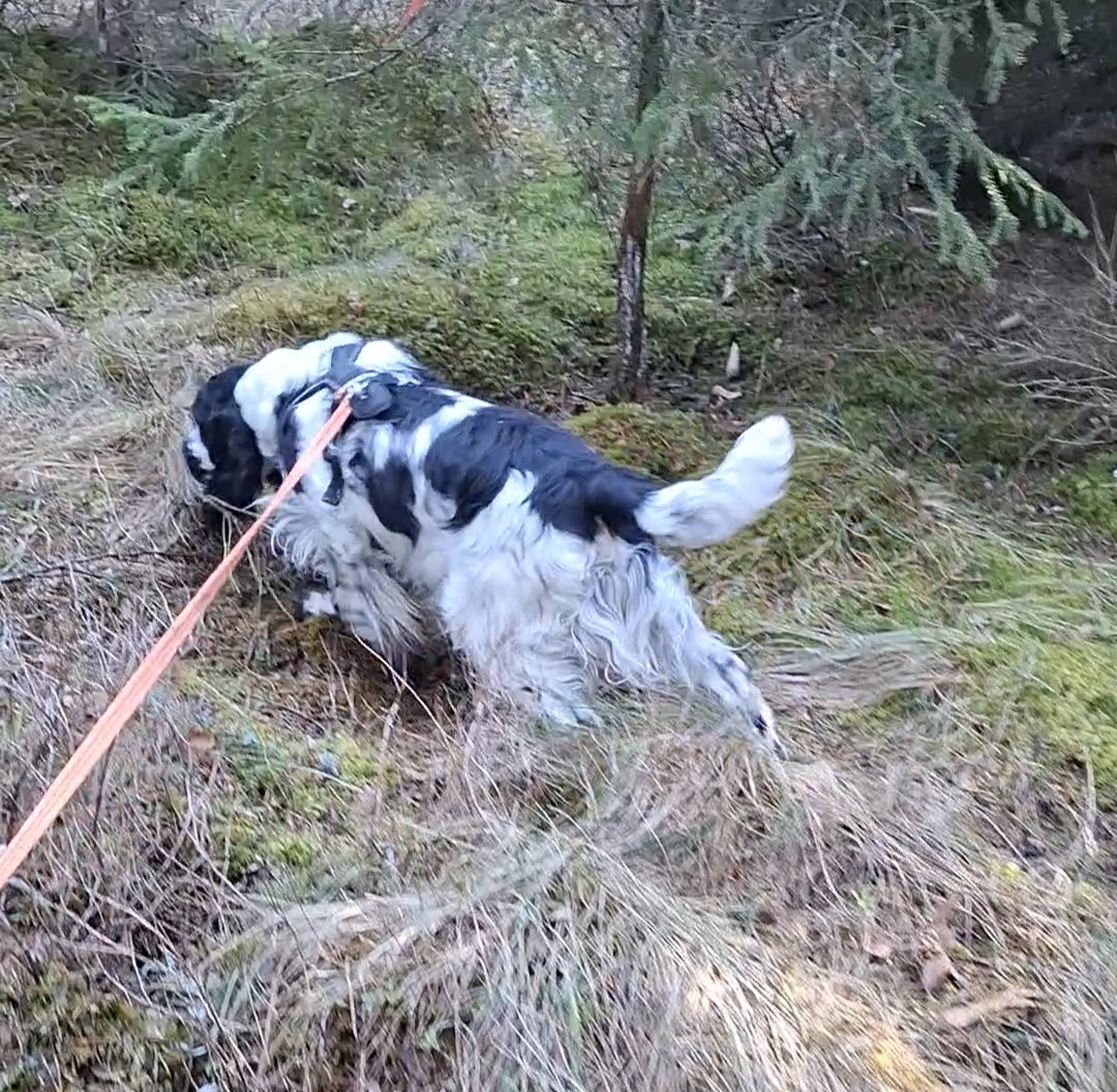 Bendic har et veldig godt og naturlig anlegg for sporsøk, lav nese, god framdrift, markerer større blodflekker og sårleier, og veldig trofast til sporet i vinklene. Håper dette vedvarer...