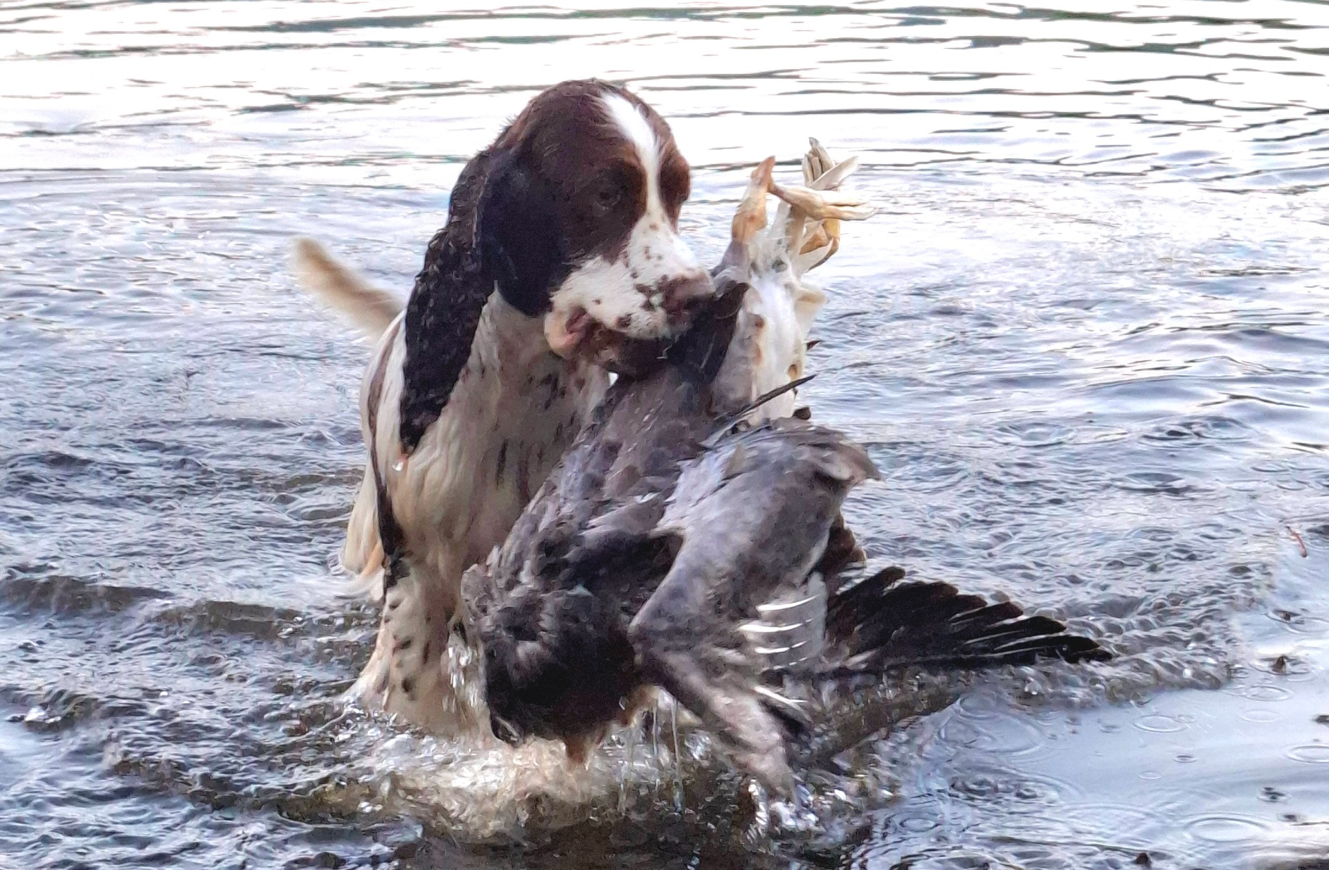 Da Isac kom for avlevering, slet Carma ( 3 mndr) seg ut av selen hun satt bundet i og kom styrtende for å dele fangsten :)