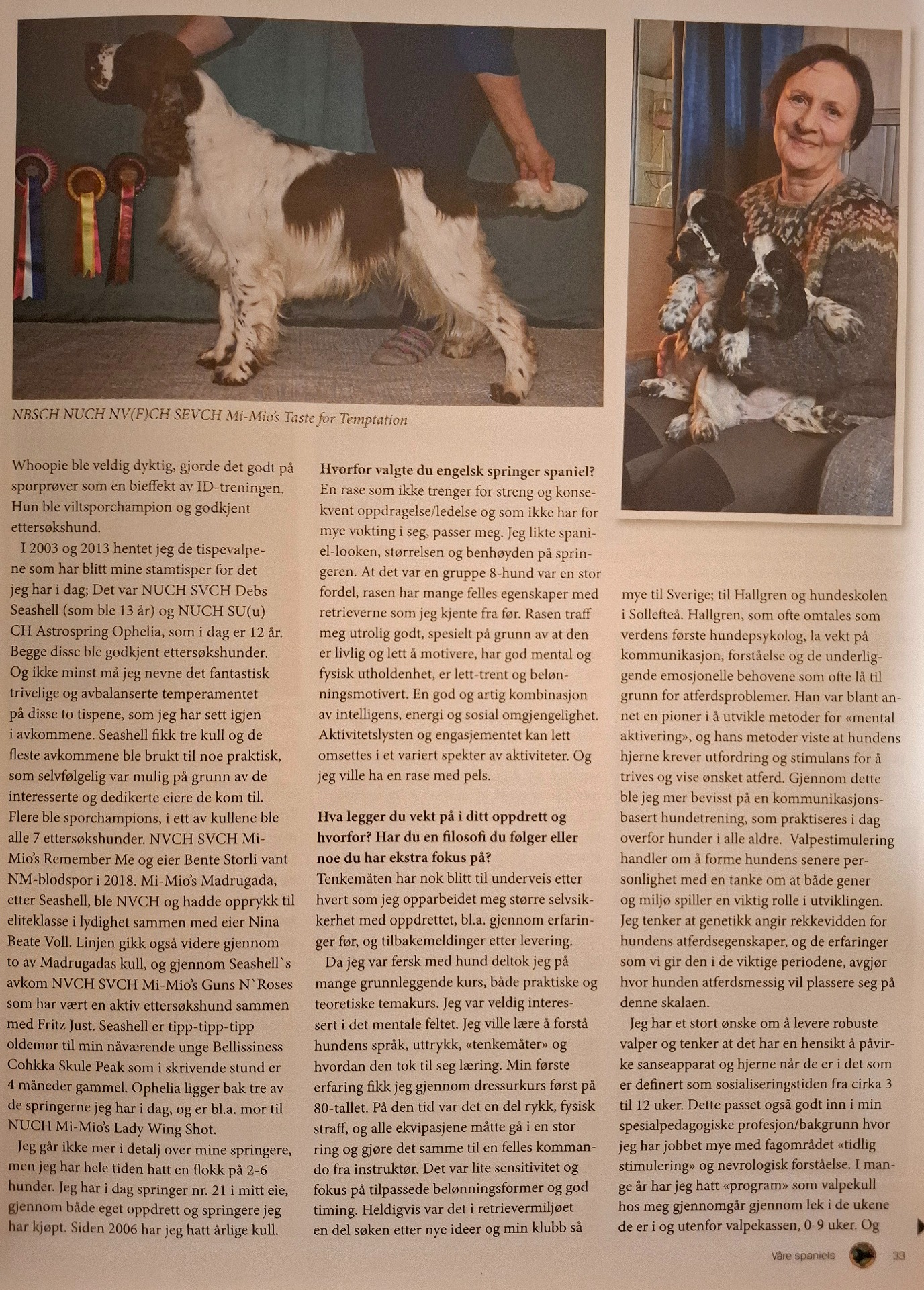 Her er kopi av intervju som ble publisert i bladet Våre Spaniels nr 2/2025. Redaksjonen hadde formulert spørsmål for å få litt bredde på innholdet.