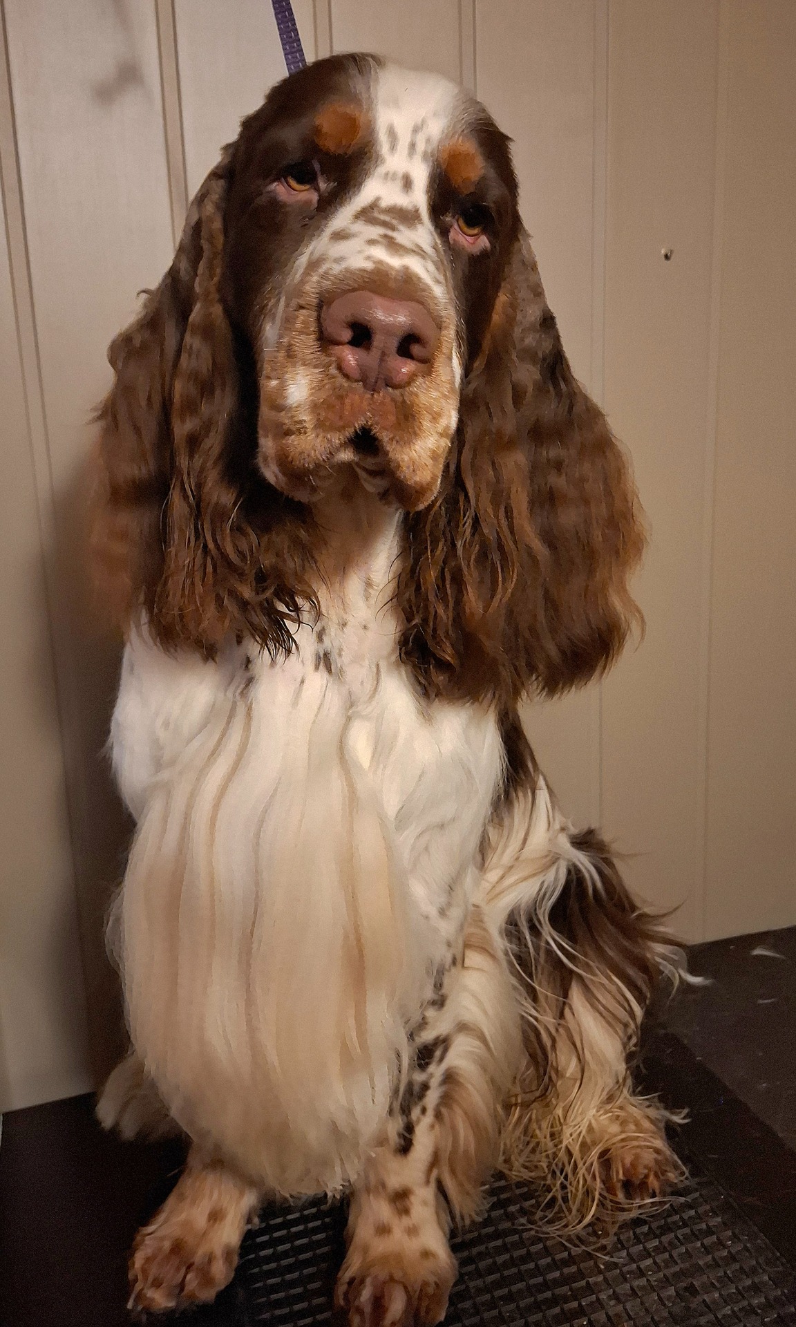Lag deg en rutine med å klippe springeren din hver 6.uke, da ser du ennå hvor linjene går og det går fort å klippe ferdig. Jo mer vant hunden blir, jo roligere er den på bordet også.