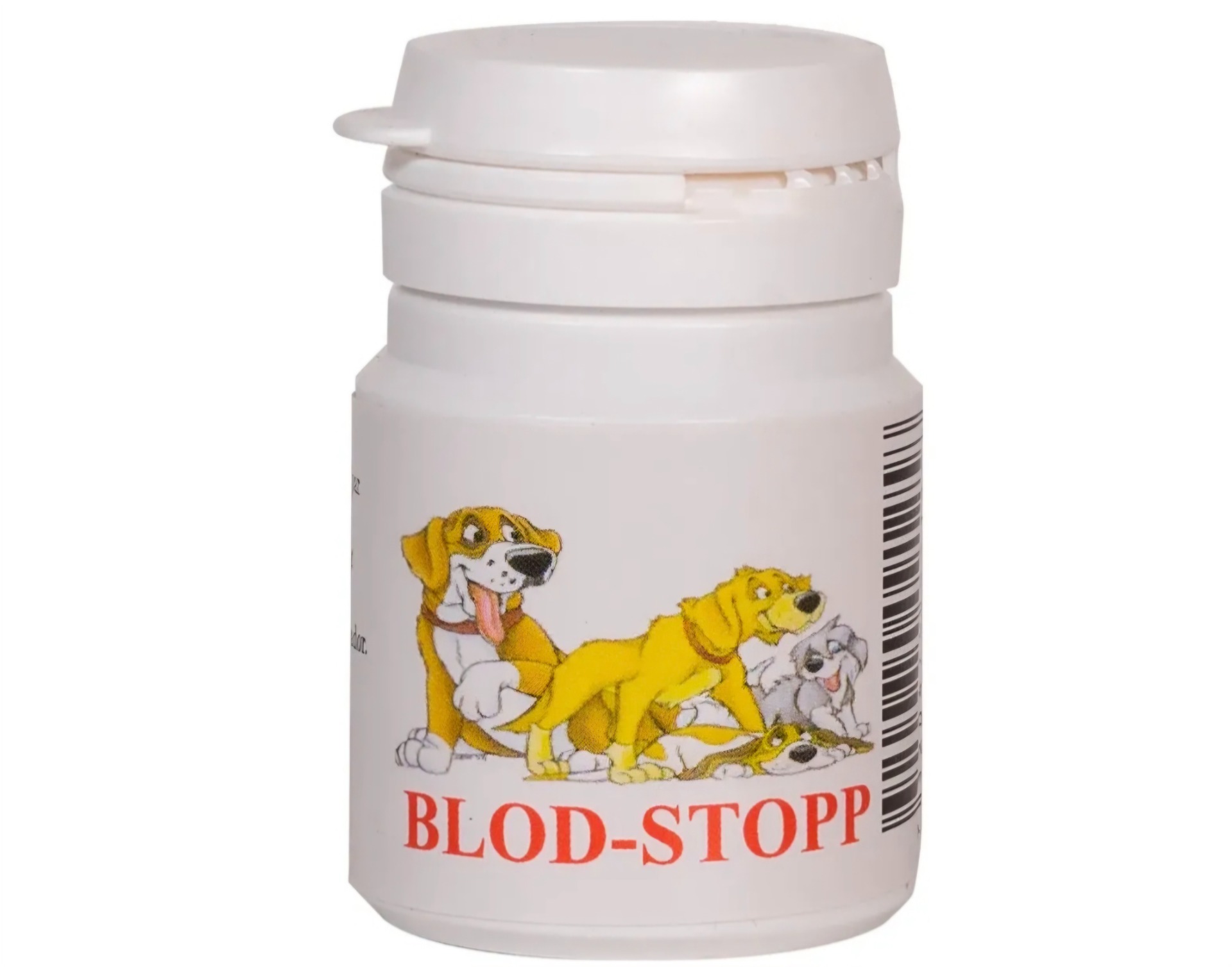 Om du er uheldig å klippe så kloen blør, er det greit å ha blodstopp-middel i nærheten. Dytt litt pulver mot klotuppen og blodet stopper veldig fort. Må oppbevares med lokket på ellers trekker pulveret fukt og blir en hard klump hele greia.