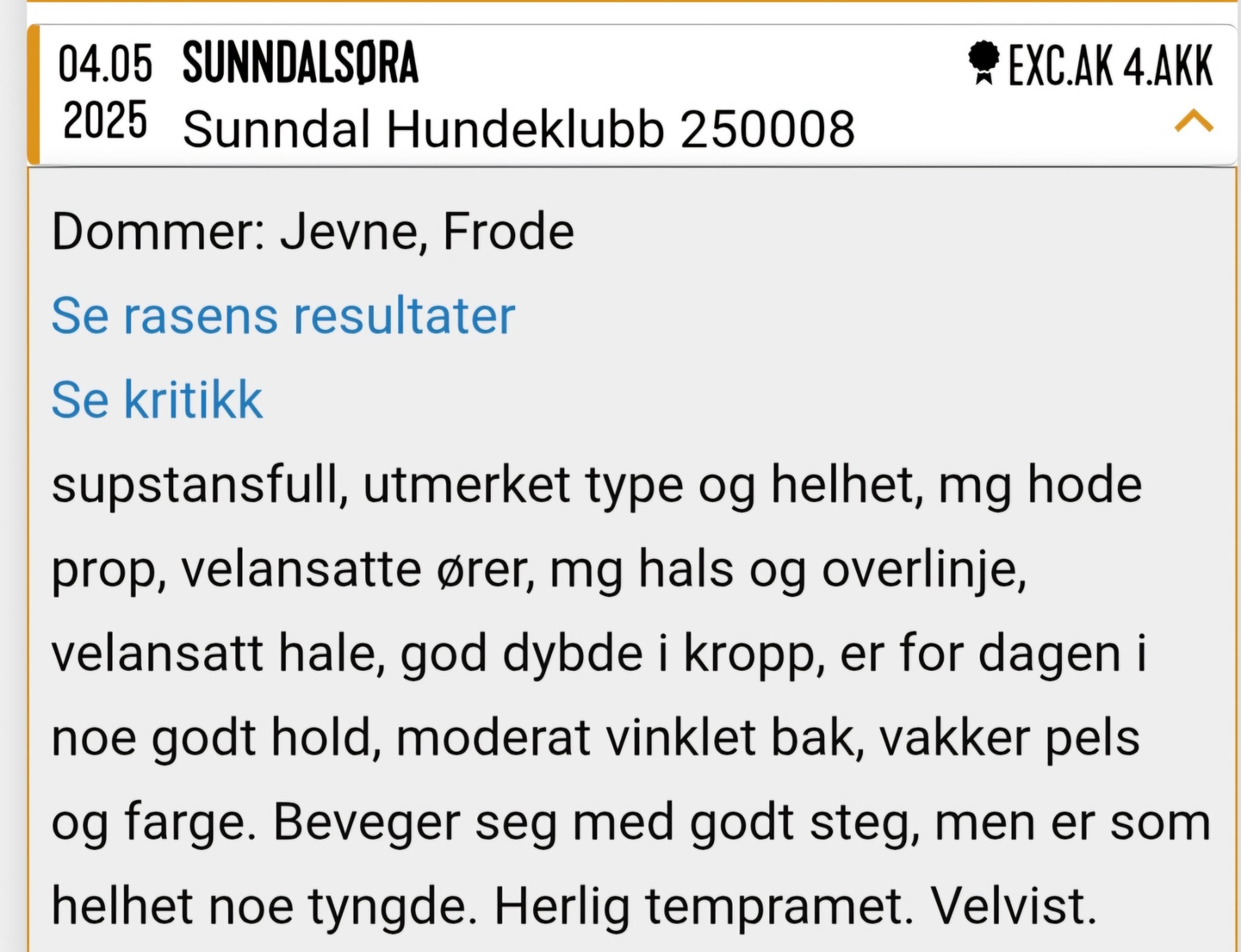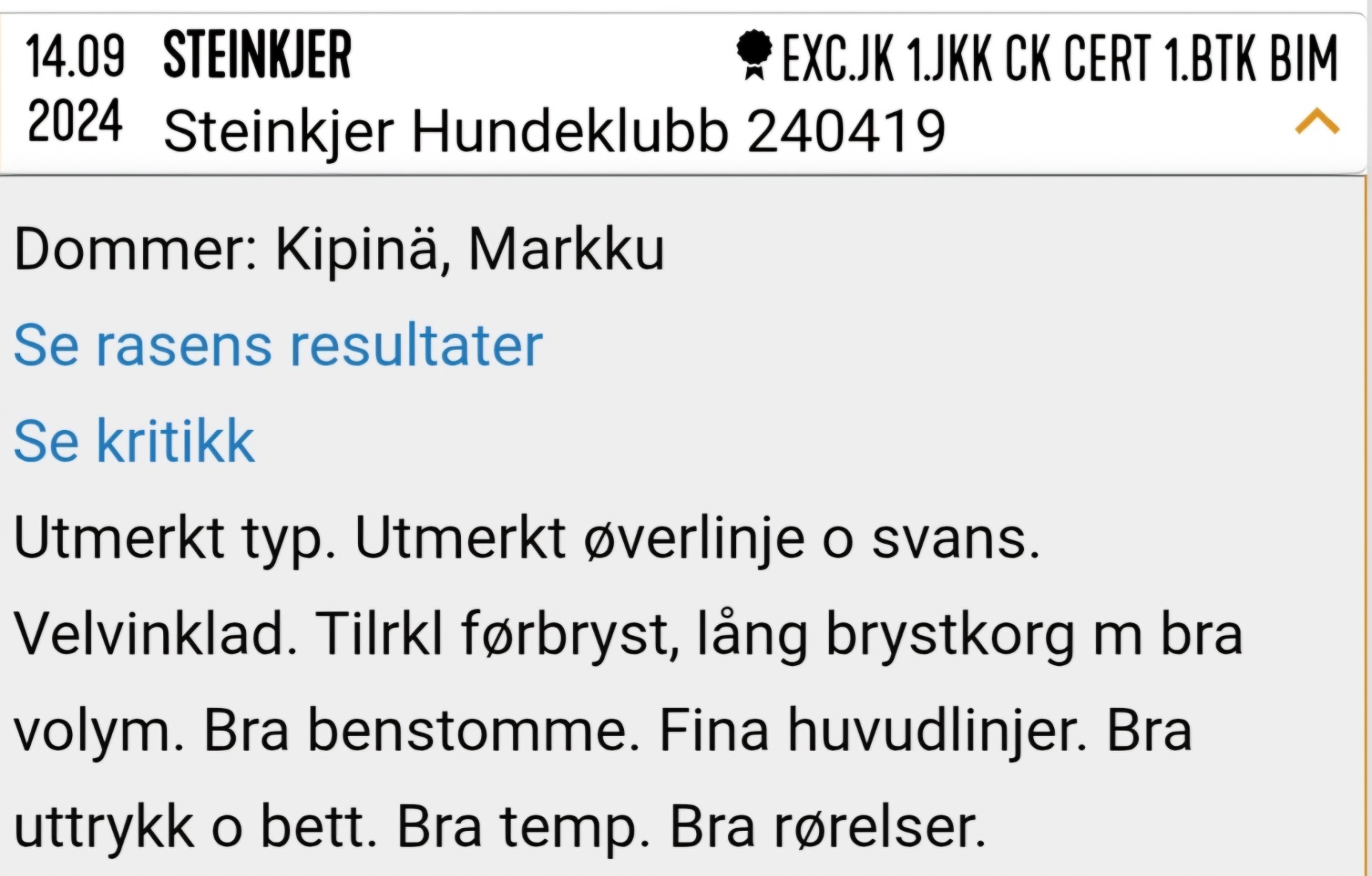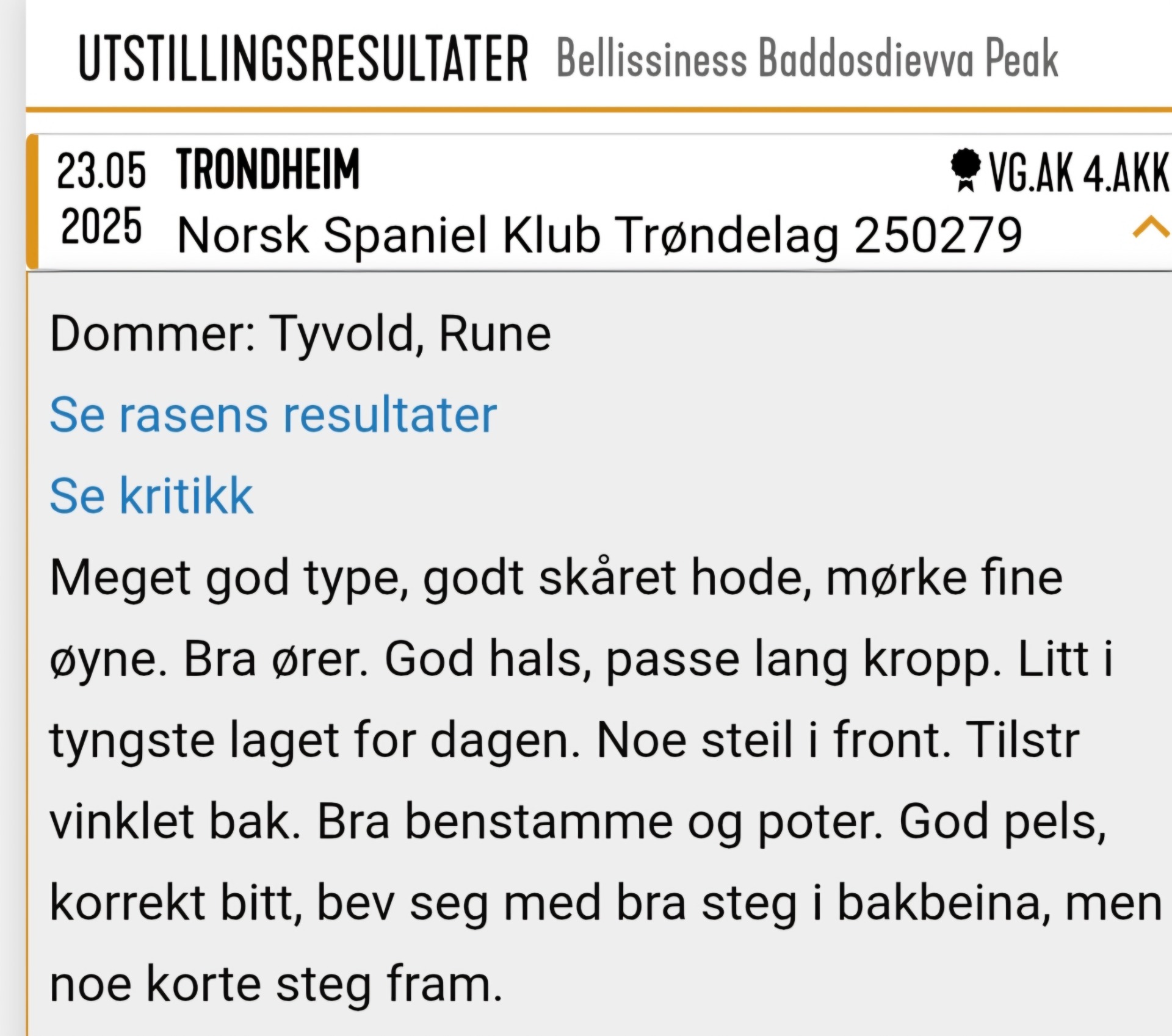 - hun har CK og Cert fra juniorklasse utstilling