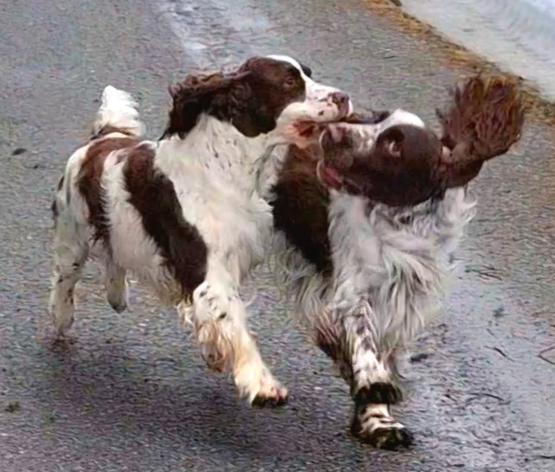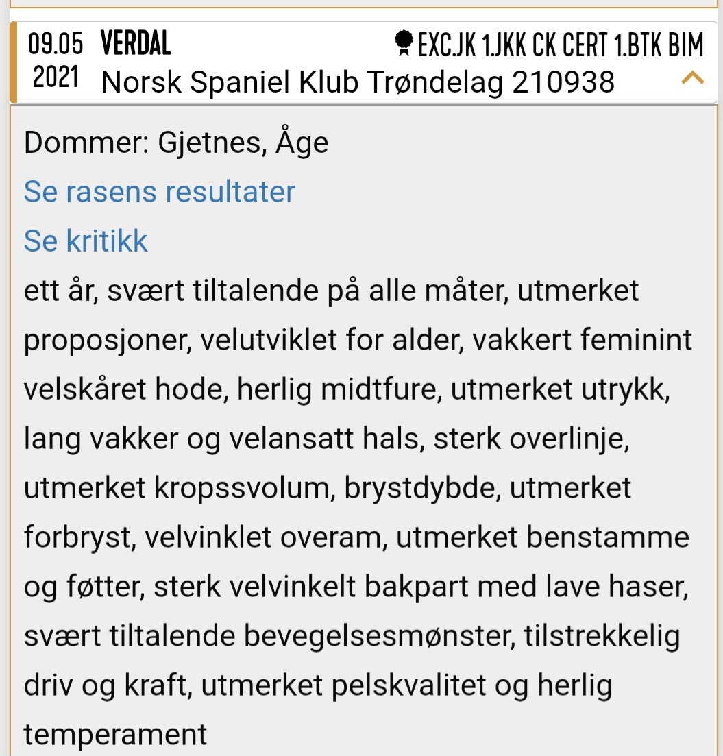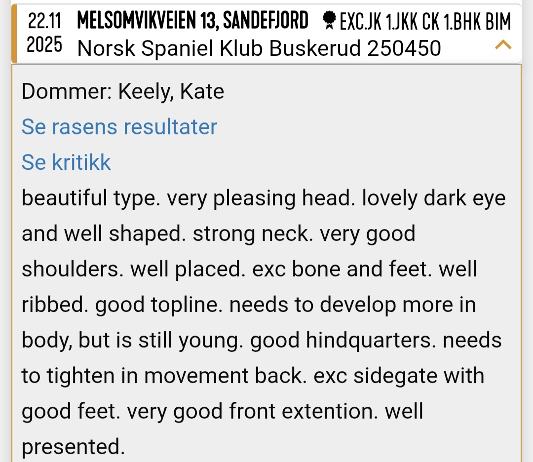 Begge bor sammen med andre springere og er vennlige på alle måter. De viser et rasetypisk springer-temperament og har et fint språk i møtesituasjoner med ukjente hunder. Ikke noe ressursforsvar. Begge har vært friske uten tegn til kroniske tilstander.